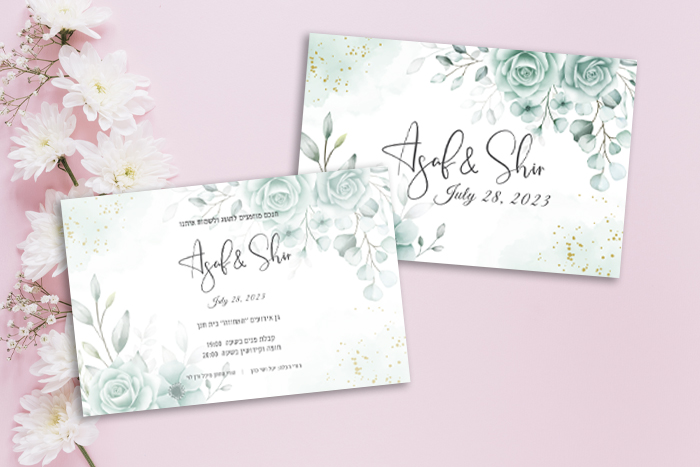 הזמנה קלאסית לחתונה פרחים 1039