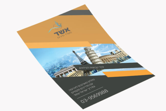 פלייר טיולים מופק במדפסות HP Indigo של One Print, עם ניהול צבע ICC למראה מקצועי עקבי. חומרי גלם פרימיום מבטיחים צבעוניות עשירה ועמידות לאורך זמן. אפשרות לגימורים מיוחדים לפי דרישה. צרו קשר ונשמח להכין הדגמה אינטראקטיבית ולספק משלוח מהיר עד הדלת.